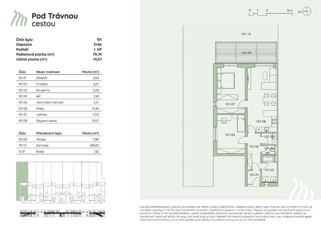 101 1. NP 3+kk 79,74 m2 17,84 m2 269,07 m2 rezervace 0 Kč