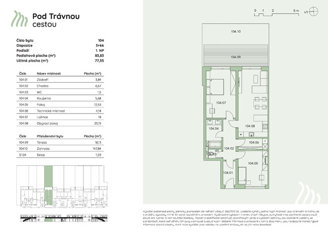 104 1. NP 3+kk 83,83 m2 18,13 m2 147,18 m2 volný 8 390 000 Kč Rezervace