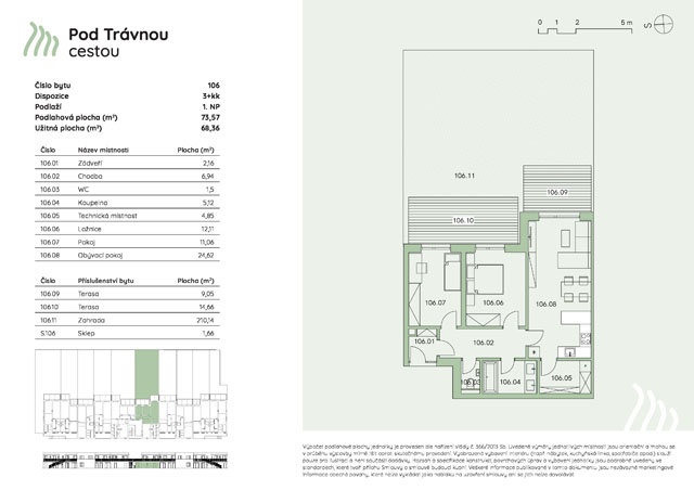 106 1. NP 3+kk 73,57 m2 23,71 m2 210,14 m2 blokace 7 990 000 Kč