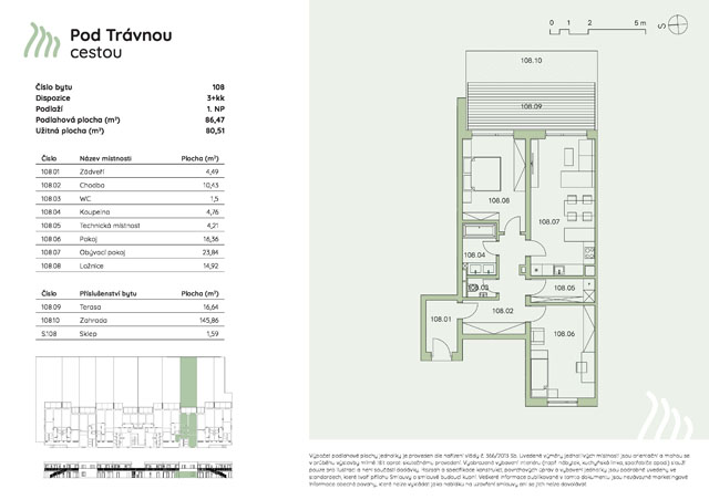 | 108 | 1. NP | 3+kk | 86,47 m2 | 16,64 m2 | 145,85 m2 | volný | 8 490 000 Kč | Rezervace |