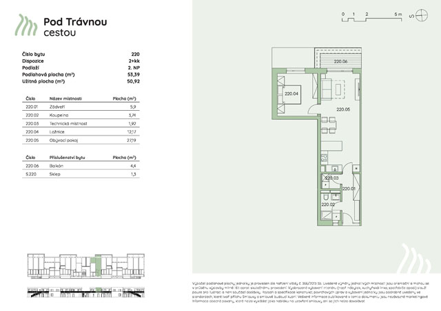 220 2. NP 2+kk 53,18 m2 4,40 m2 - prodáno 0 Kč