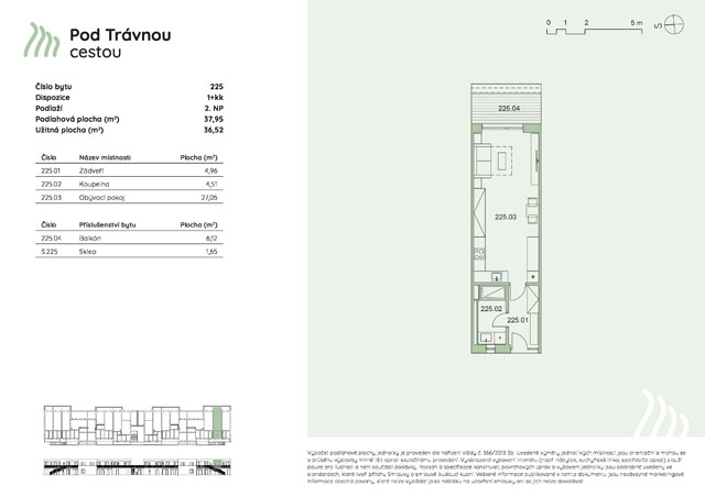 225 2. NP 1+kk 38,00 m2 6,12 m2 - prodáno 0 Kč