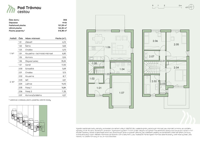 Soubor PDF s půdorysem a podrobnými informacemi o řadovém domu.